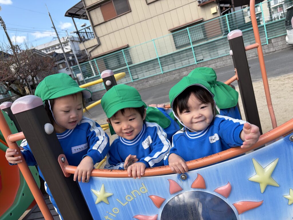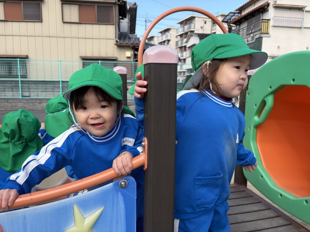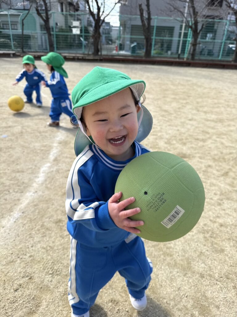 ボールをしたり滑り台をしたり、みんなで地面に絵を描いたりとたくさん楽しんでいましたよ🎶