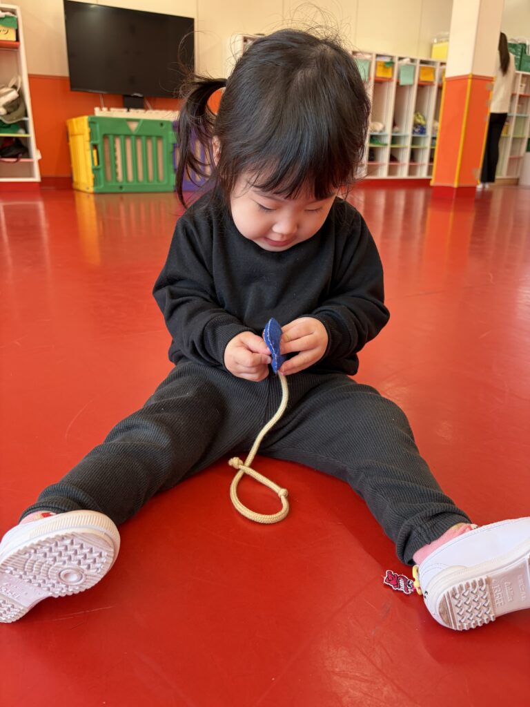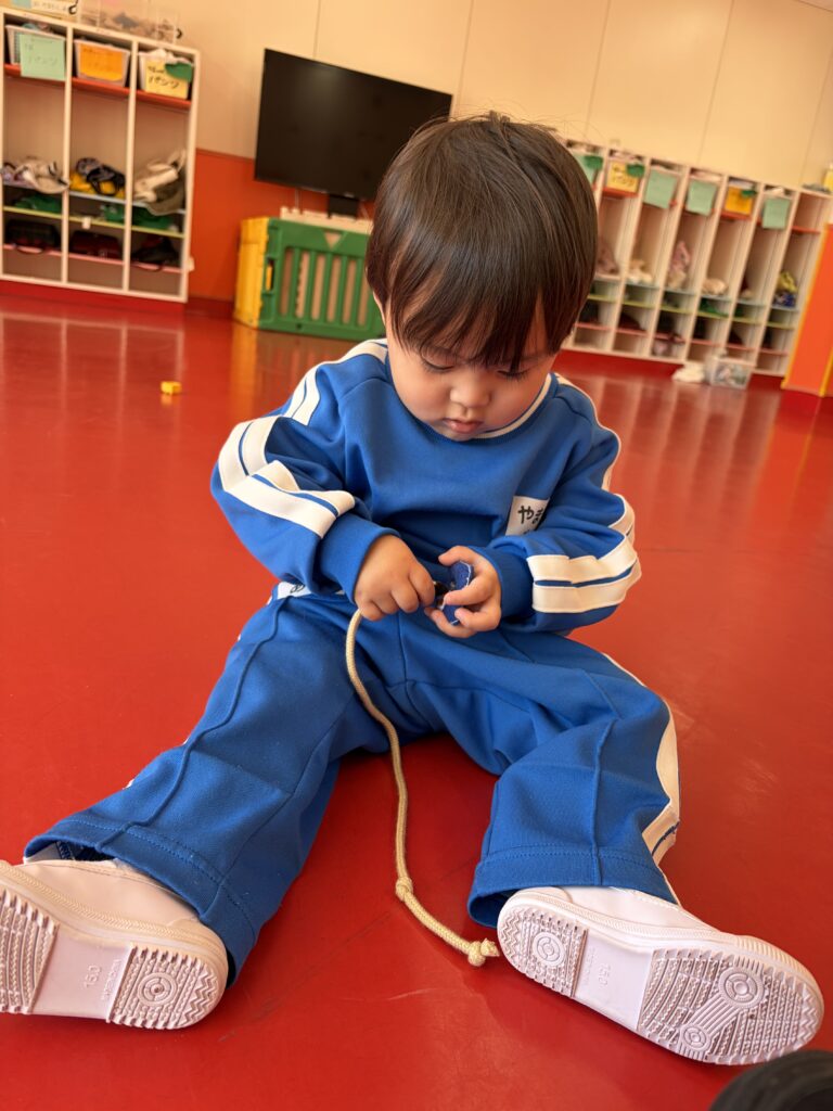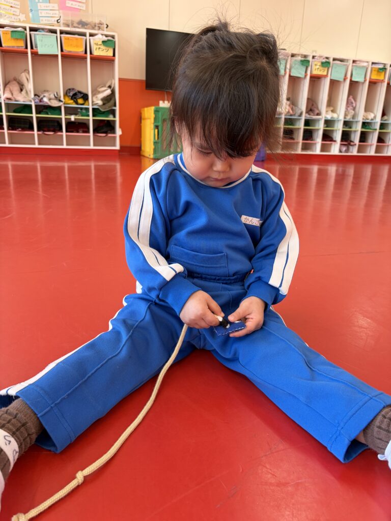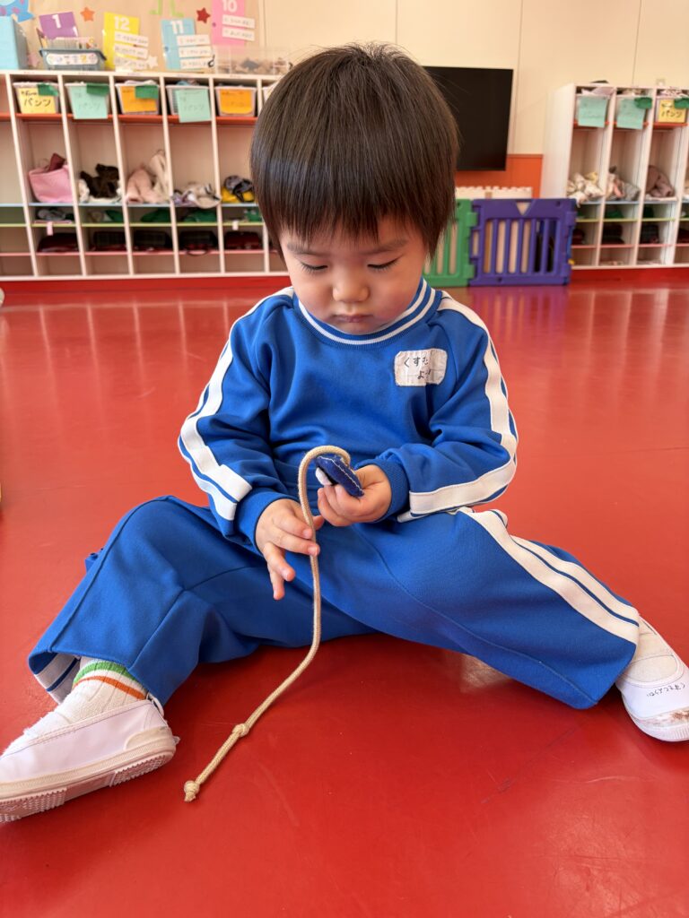 穴に紐を通したり、外し方 付け方を少しずつ覚えて取り組んでくれています!