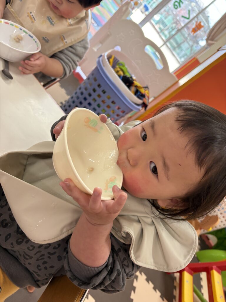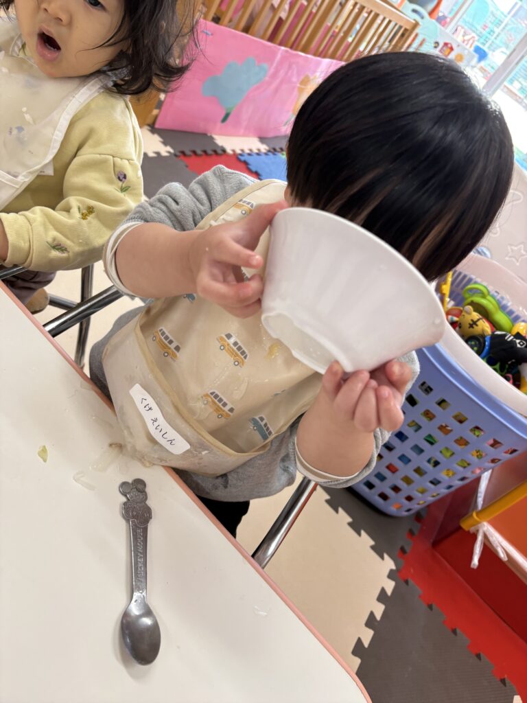 コップやお椀の持ち方スプーンの使い方も少しずつ上手になってきました‼️