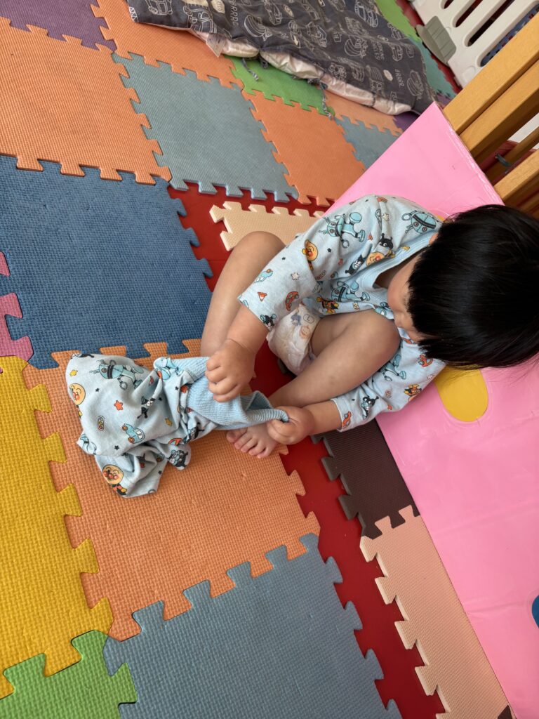 ズボンを脱ぐ、ズボンを履こうとすることも、取り組んでいます。