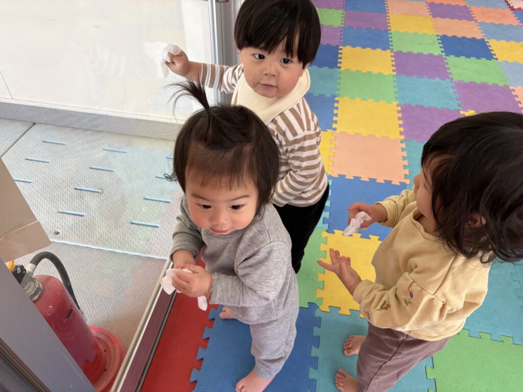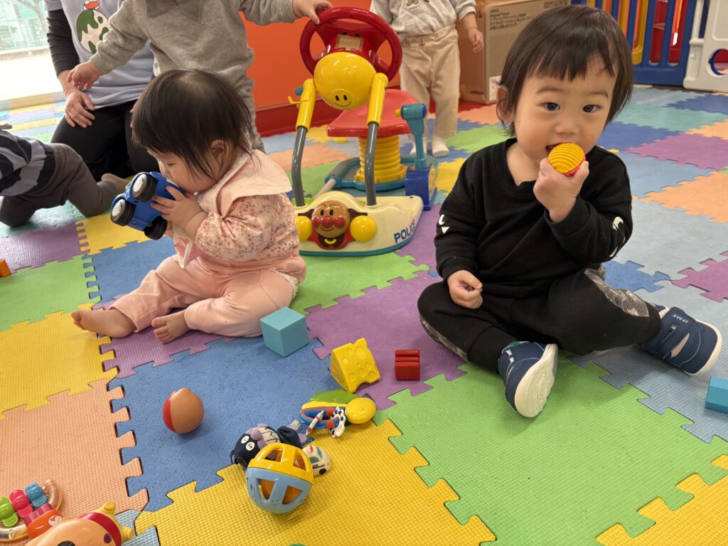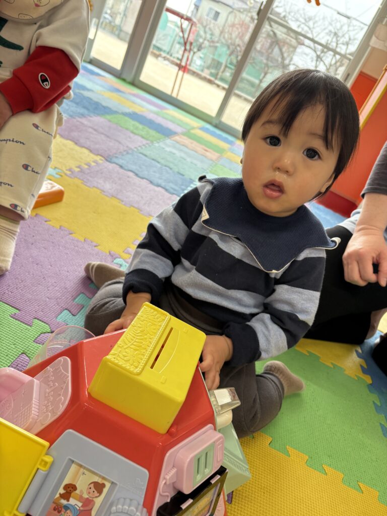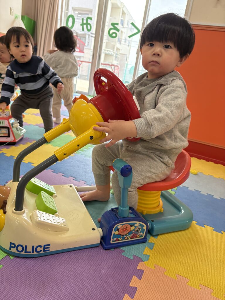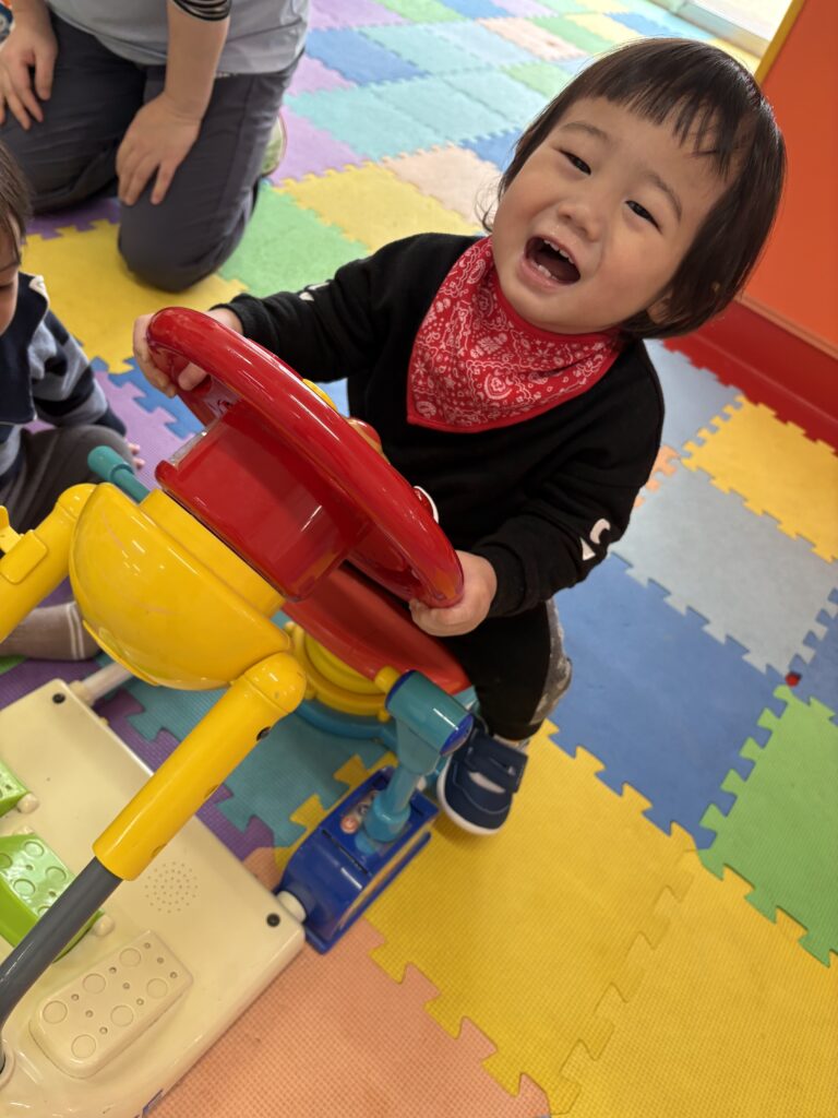 お部屋でおもちゃの取り合いや、譲り合いの姿も沢山見られます。