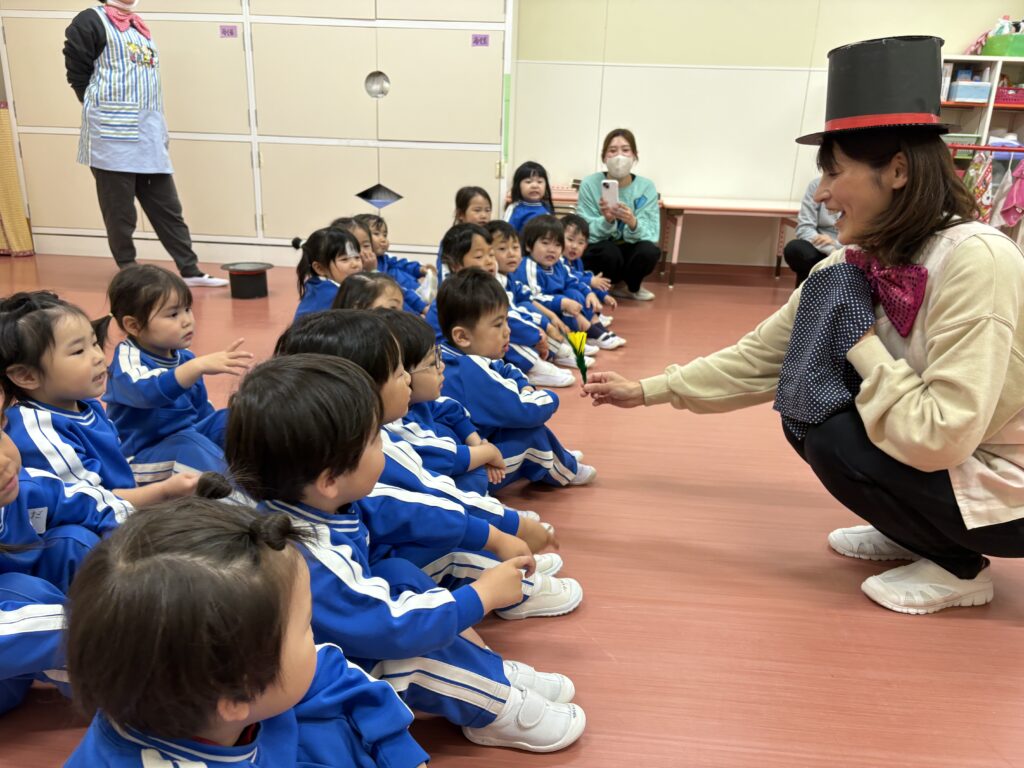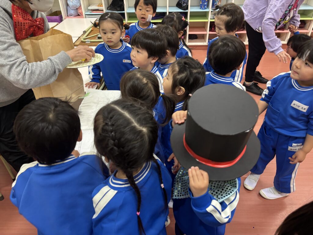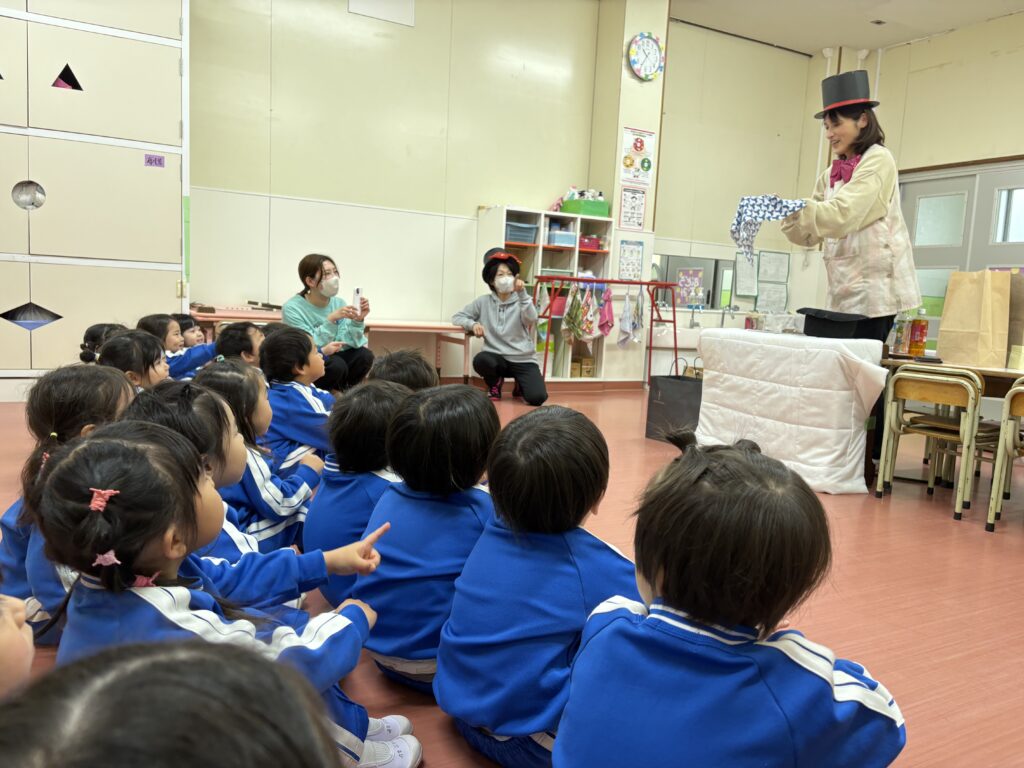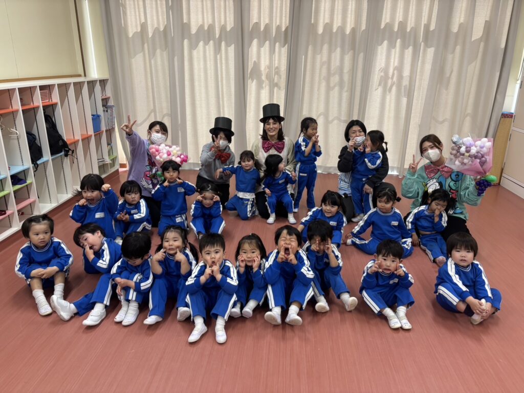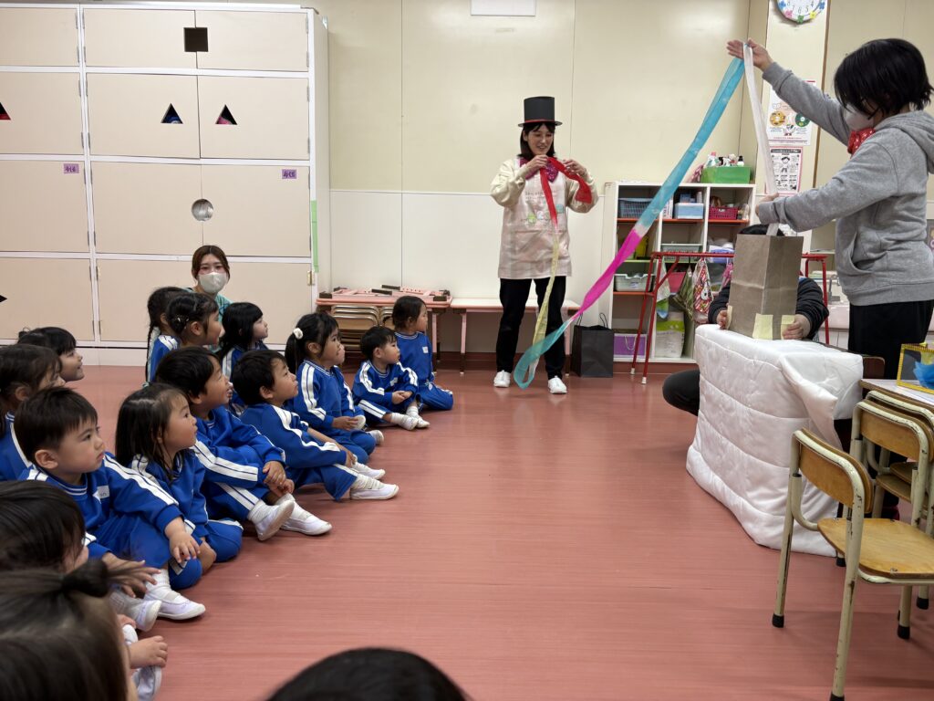 今日は最後にさくらんぼ、ぶどう組の皆でマジックを見ました✨️パートの先生方と楽しい時間を過ごす事が出来ました!!