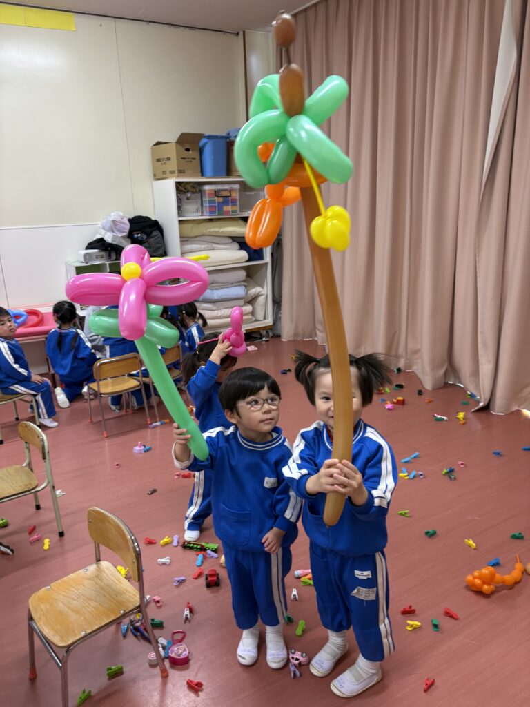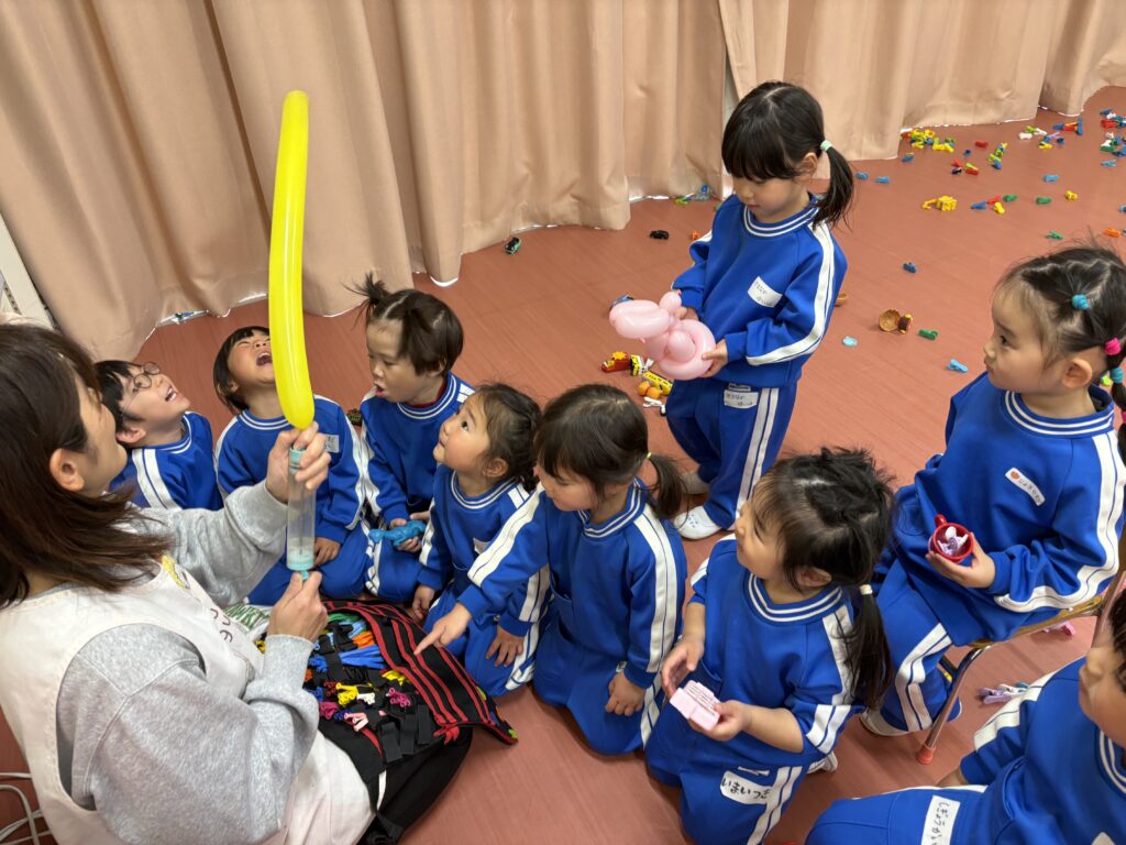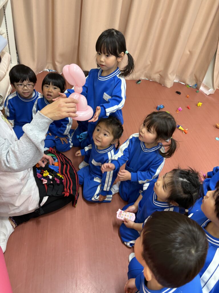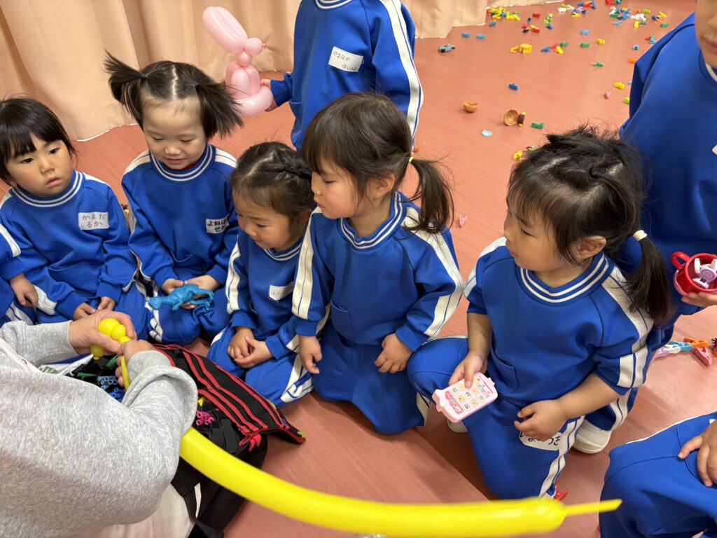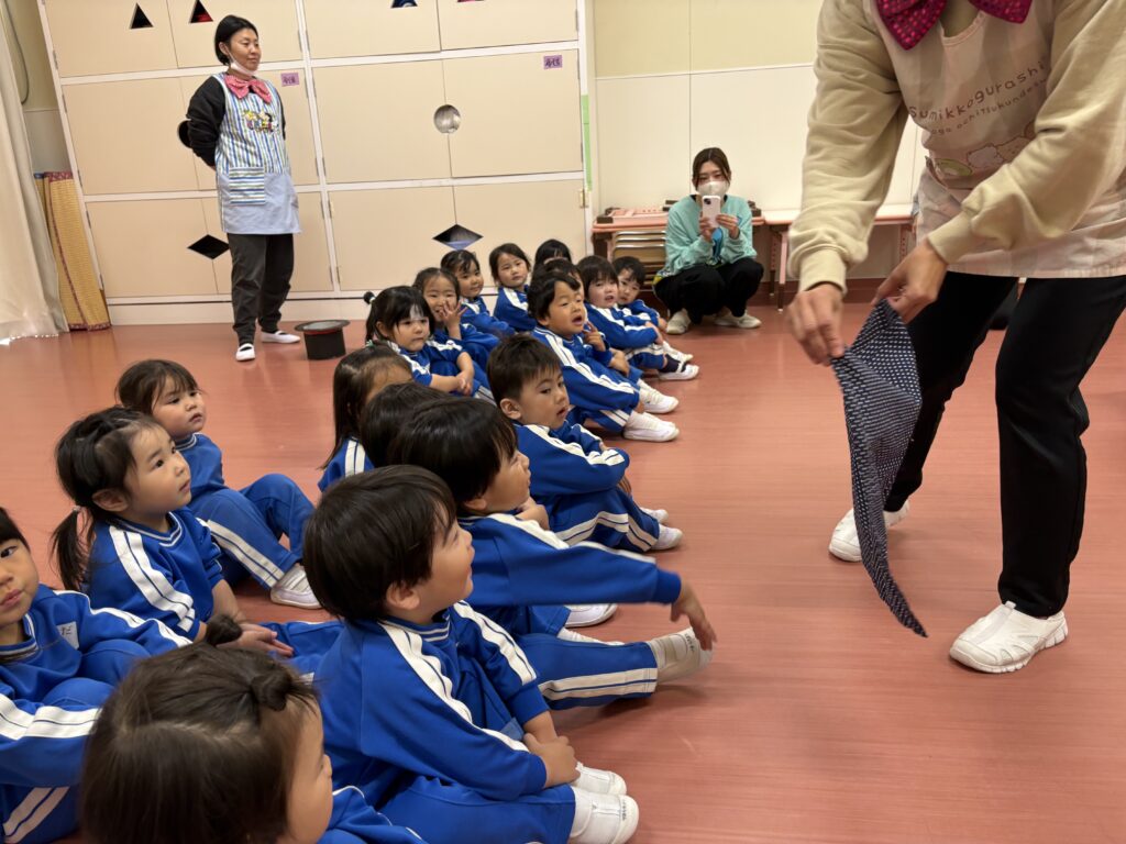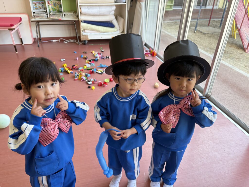 今日は最後にさくらんぼ、ぶどう組の皆でマジックを見ました✨️パートの先生方と楽しい時間を過ごす事が出来ました!!
