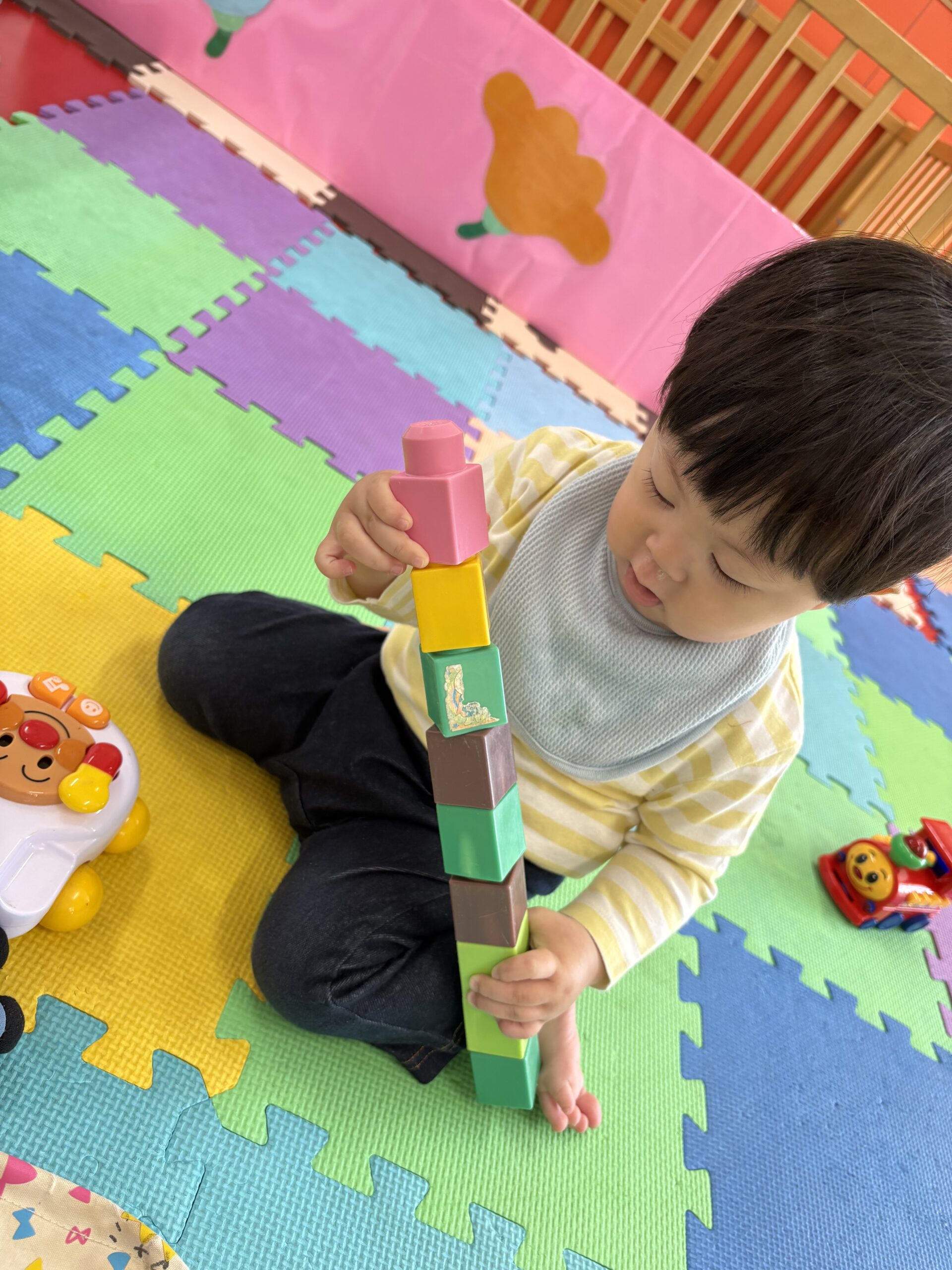 いつもより少し小さい中くらいのブロックを上手に積み上げたりくっつけたりして遊んでいた子どもたちです👏🏼✨